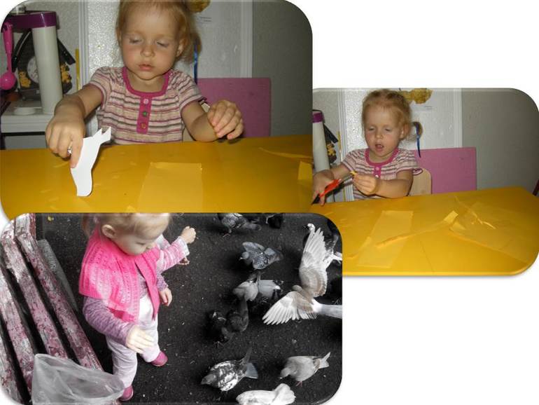 Так как неделька была давно и я читала, что нужно сделать, то уличные дела мы делали ранее, и голубей покормили, сегодня лишь вспомнили, и конечно нарезали крошек и покормили воробушка.