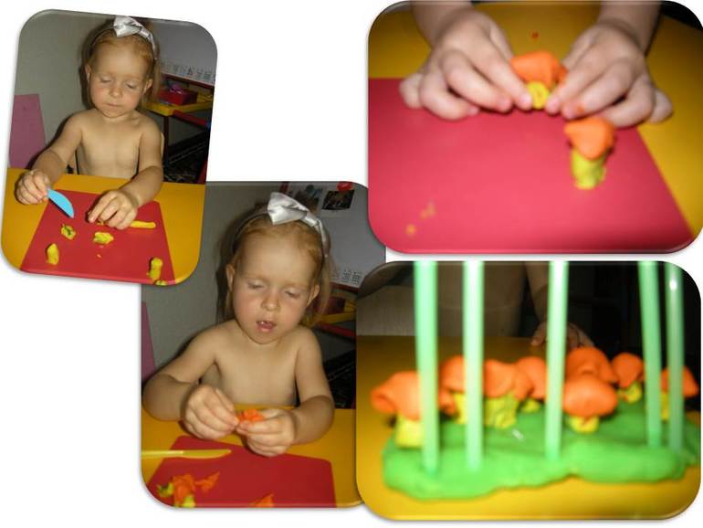 Лепили грибы, у Вики не плохо и самой получилось, это ее два гриба справа сверху