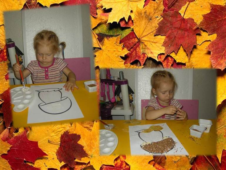 Сегодня же начали с аппликации для марафона "Краски осени", он как раз тематический для нас оказался))