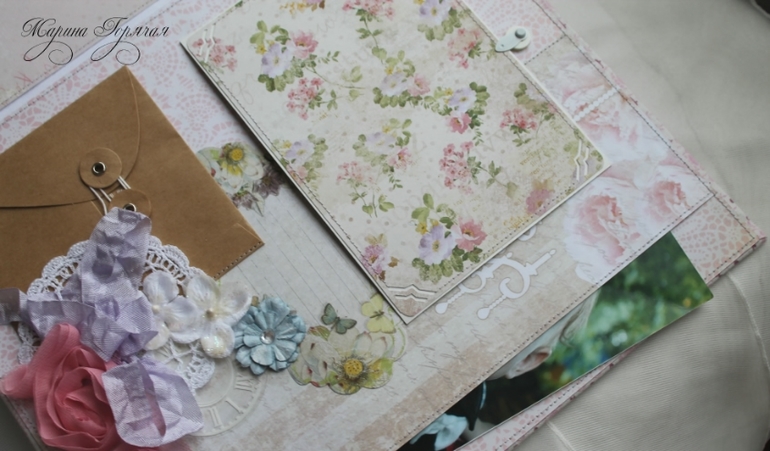 Формат альбома 24 на 28 см, рассчитан примерно на 50 фото стандартного формата."Звездой" этого альбома стала великолепнейшая коллекция Prima Meadow Lark, которую я скупила полностью - от бумаги до кристаллов и керамических плиточек! К ней я добавила нежнейшую Fleur Design (Шебби-шик прованс и Базовая), немного Tilda Autumn Lilac и дорогущую Maya Design!))) И, конечно же, кружева-кружева!