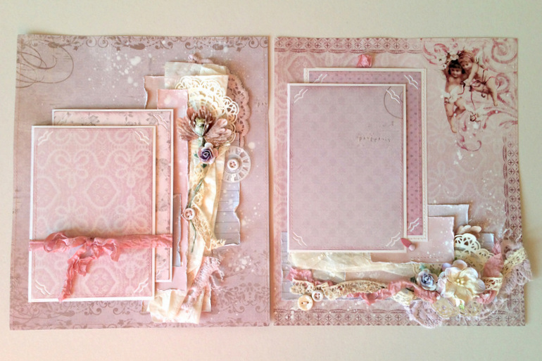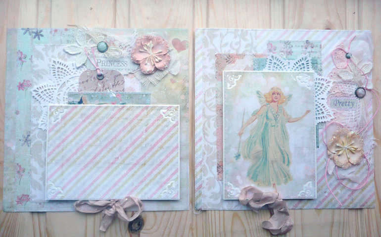 Не расстраивайся ))) Каждый альбом уникален по своему. В каждом есть душа. Попробуй в следующих разворотах сделать более сложную композицию. Не бойся наслаивать. Мне тоже страшновато столько кружева и бумаги вместе соединять и не переборщить, но в итоге вроде ничего получилось. Мне в твоем развороте немного цветочки смущают,они как будто отдельно друг от друга не соединены между собой. Я не гуру конечно,но может в след. разворотиках их как-то покучнее посадить или чем-то связать?