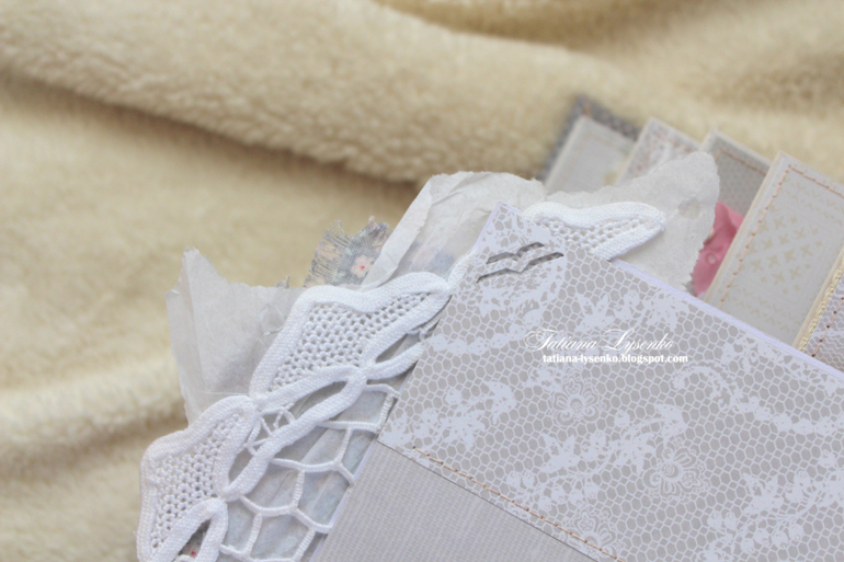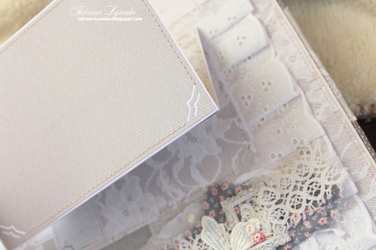 Леночка, разворот получился легким, светлым, нежным и многослойным. Молодец! Мне вот только интересно как закреплен карман? Он пришит или приклеен?