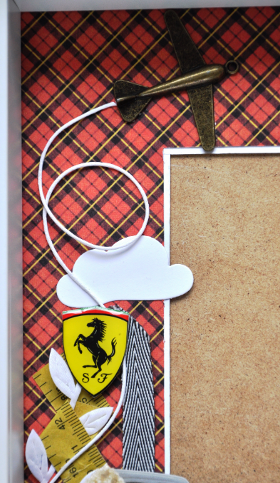 Бумага График 45, карточка с гоночной машиной из листа Космо крикет, тесьма, вощеный шнур, бумажная мерная лента, тесьма с листочками, подвеска самолет, вырубка машинка, облака, булавка, бархатные листочки Джипсис 7, стикер Феррари - собственность заказчика))))