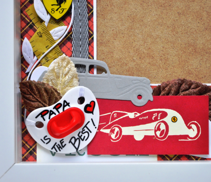 мои уже постоянные ;) клиенты заказали мне две рамочки в дополнение к малышковой. Обязательным условием было непременное использование символики Феррари ( это папина страсть), передали мне пакетик с двумя сосками, какими-то значками Феррари и оставили меня просто в прострации.. Решено было сделать рамки "я с мамой" и "я с папой". Папина рамка будет с автомобильной тематикой, а мама попросила себе "с цветочками".