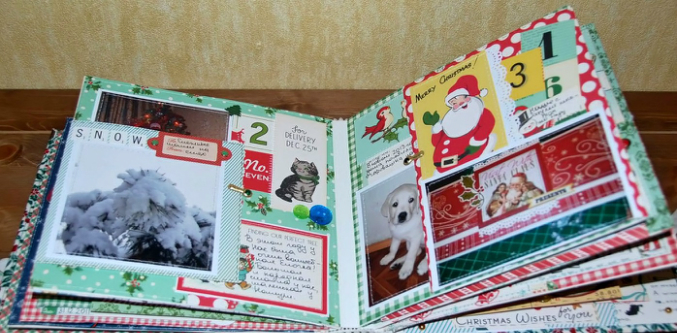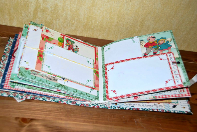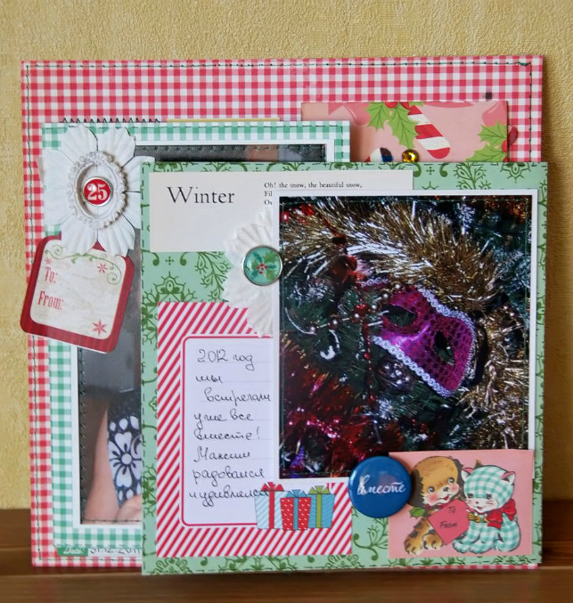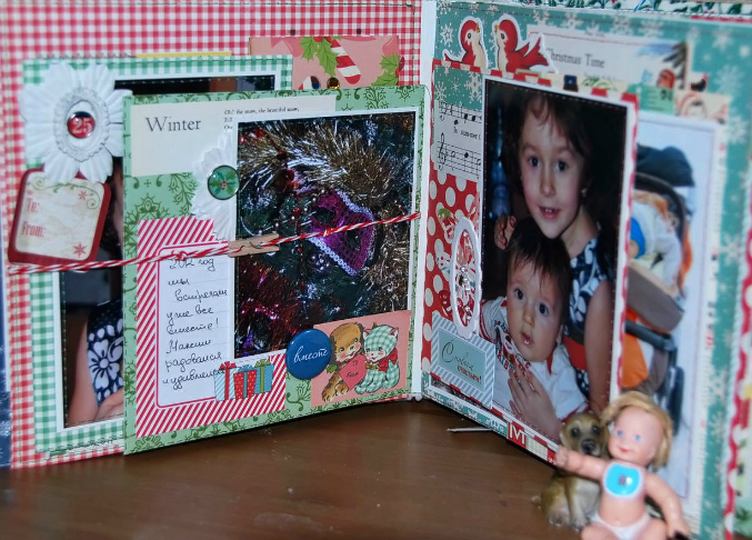 Ну а теперь я вам покажу весь мой альбом целиком!! Сначала расскажу - альбом про наши новогодние приключения начиная с 2009-2010 нг и до 2015-2016 =)) во как)) То есть 3 разворота с фотками и 3 без.