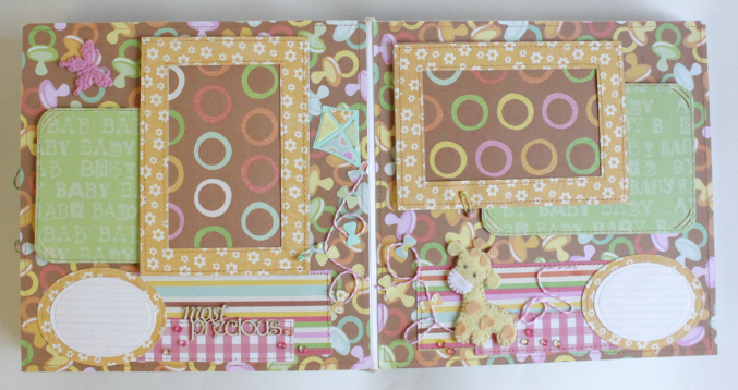 Предназначен он для фото малыша до трех лет, на каждый годик по три разворота. Размер альбома 25/25см, 9 разворотов.