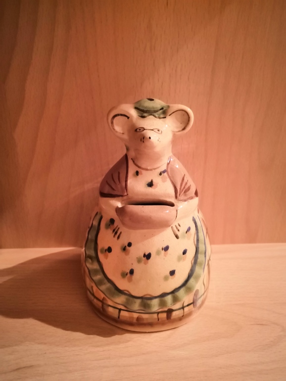 Копилка керамическая, небольшая. Привезли откуда-то в подарок. Подозреваю, что ручная работа (ни клейма, ничего нет). Экв 200