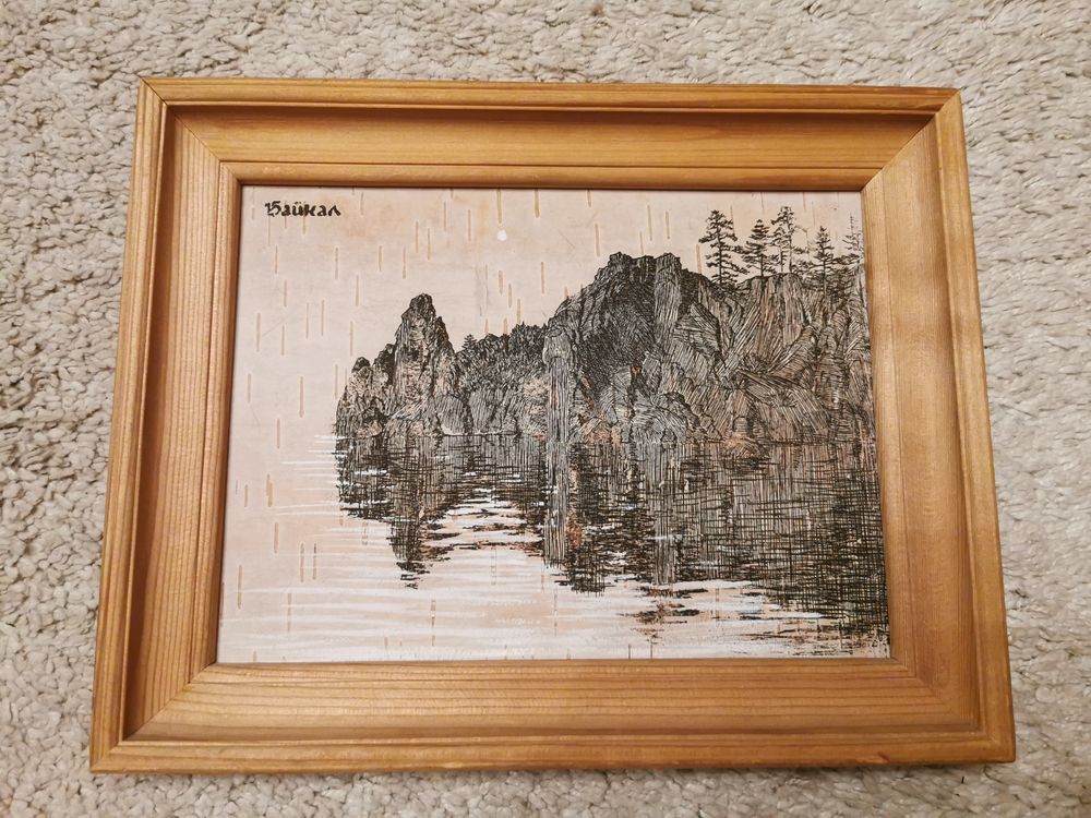 Картина на бересте. Есть царапинки небольшие, но в глаза не бросаются. По размерам небольшая. Замерю чуть позже или по запросу. Экв 200