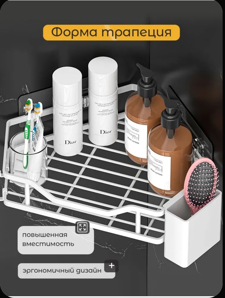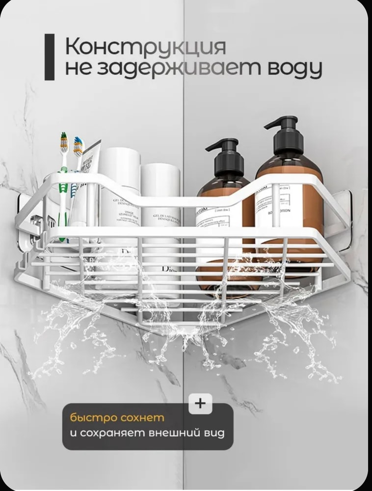Полка в ванную угловая. Новая. БЕЗ стаканчика. Крепление без сверления, на липучки. Экв 500