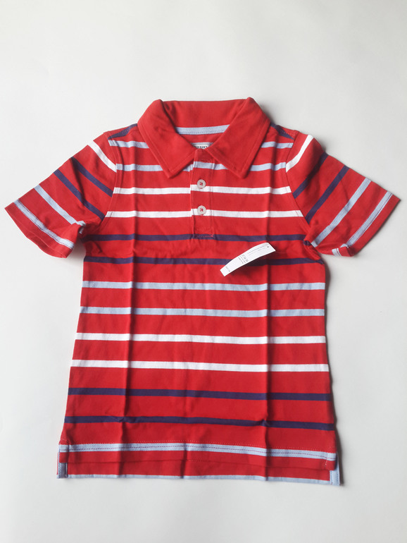 поло красное в полоску, 5Т, ОГ-64см., дл.ср.линии спинки- 45,5- см., 380р.