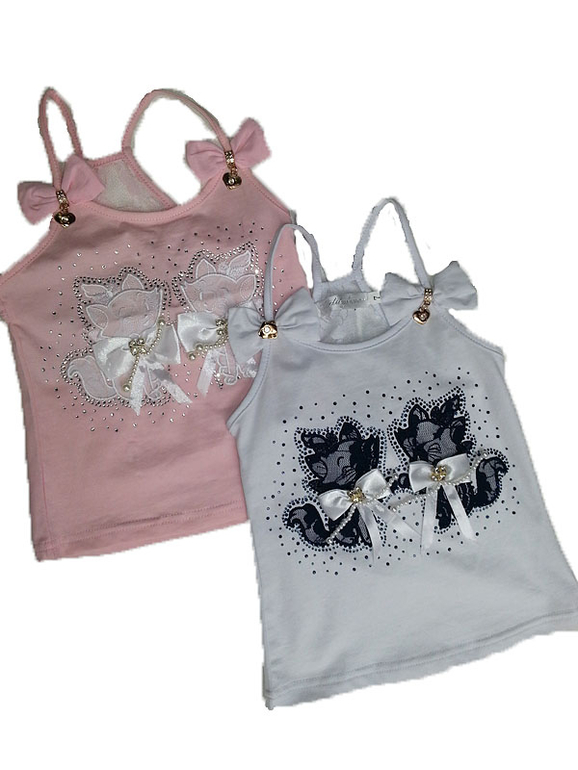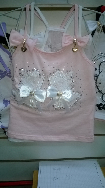 № 125. Топ "Котята" розовый с бел бантиками. Хорошенькие со стразиками, бантиками и бусинками.