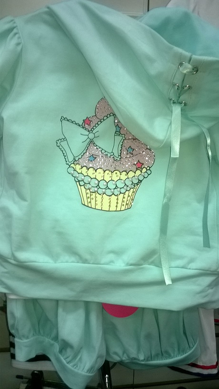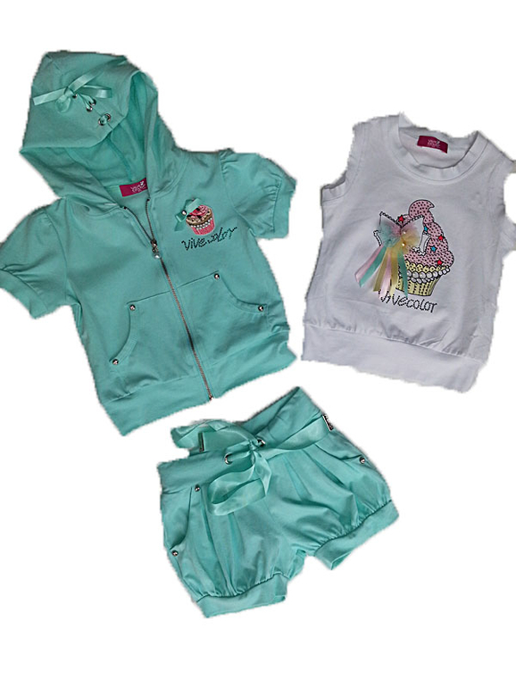 № 1-Б. ШИКАРНЫЙ КОМПЛЕКТ "Пироженое"! Тройка: кофточка , футболка и шортики! Такой СЛАДЕНЬКИЙ!