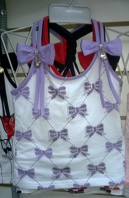 № 126. Топ "Бантики" со стразинками (С018). Размер: 7-15 (Рост: 98-104-110-116-122)