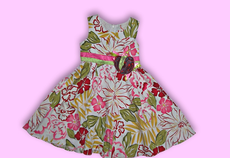 Шикарное хлопковое платье с розами на поясе. На спинке пояс лентами.