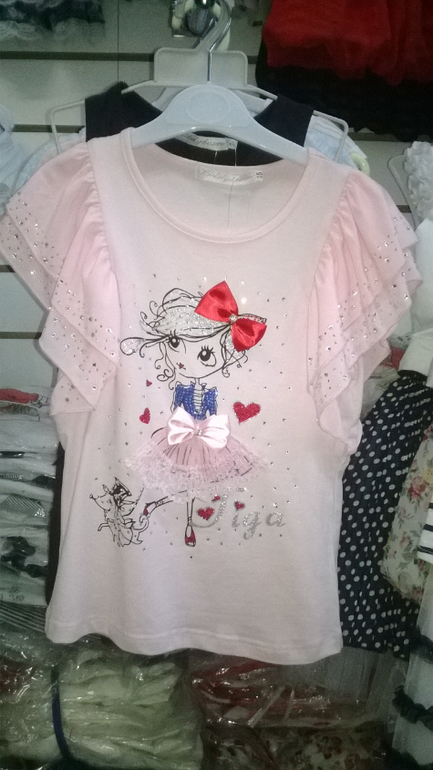 № 107. Футболка "Девочка с собачкой". Шикарные летящие рукавчики с о стразами.