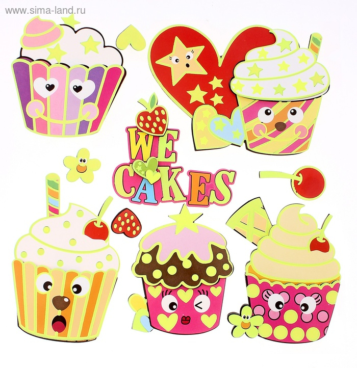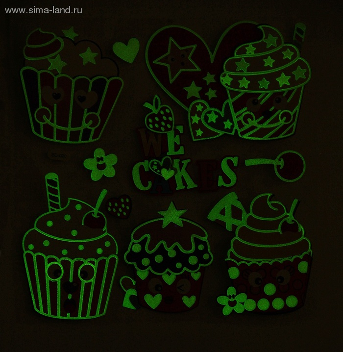 Наклейка интерьерная фосфорная слоями "Пироженки", цена 35 р. (наличие 2 набора)