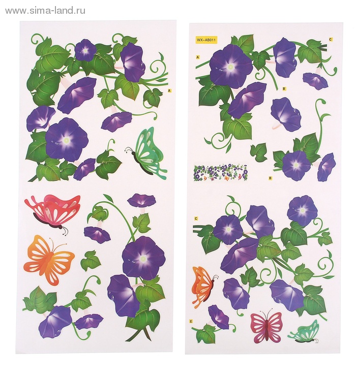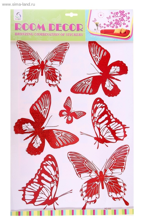 Наклейка интерьерная "Бабочки в цветах" МИКС, цена 75 р. (наличие 2 набора)