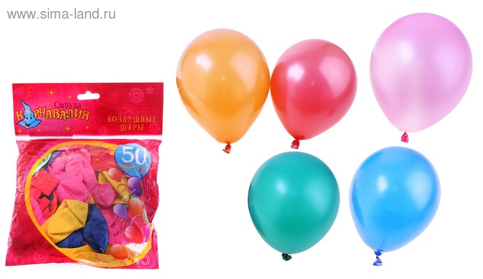 Воздушные шары, набор 50 шт, цвета МИКС металлик, 10 дюймов, цена 140 р.