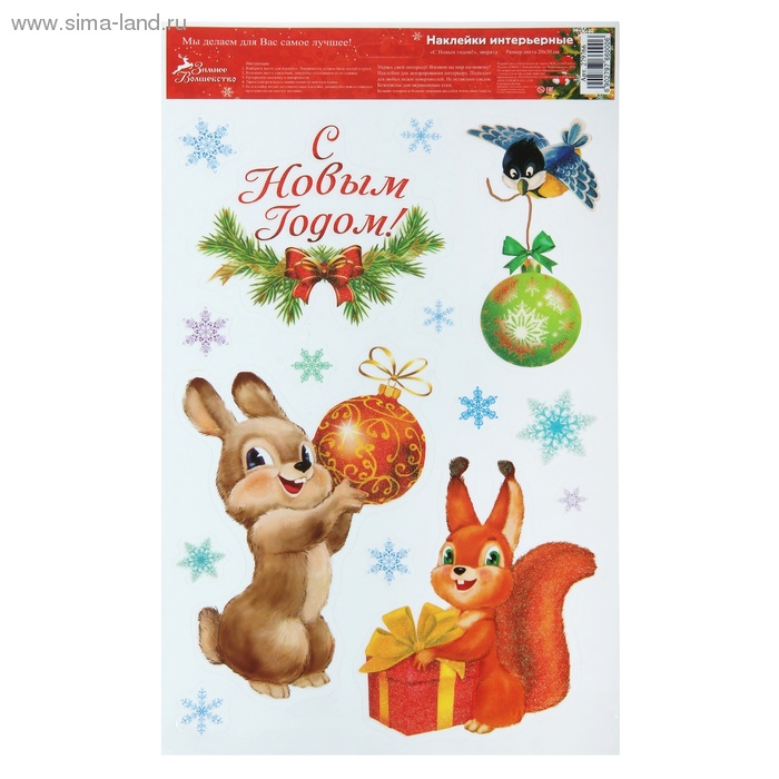Наклейка интерьерная "С Новым годом!" зверята, цена 70 р. (наличие 4 шт)