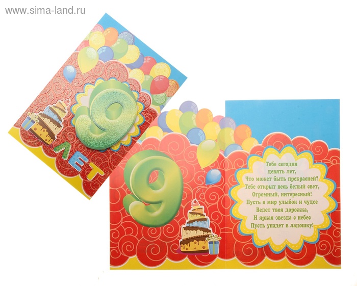 Открытка 9 лет пружинка минигигант 197х290, цена 35 р. (наличие 2 шт)