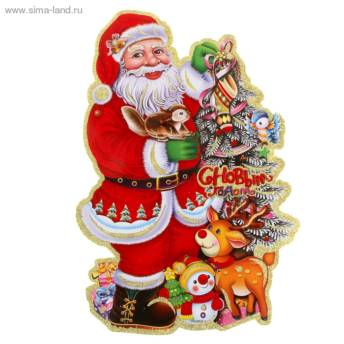 Плакат Дед Мороз "С Новым Годом!" отделка бархатом, цена 75 р.