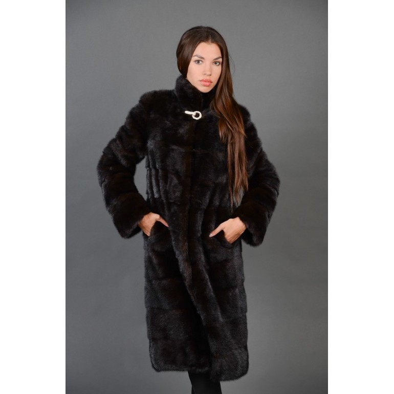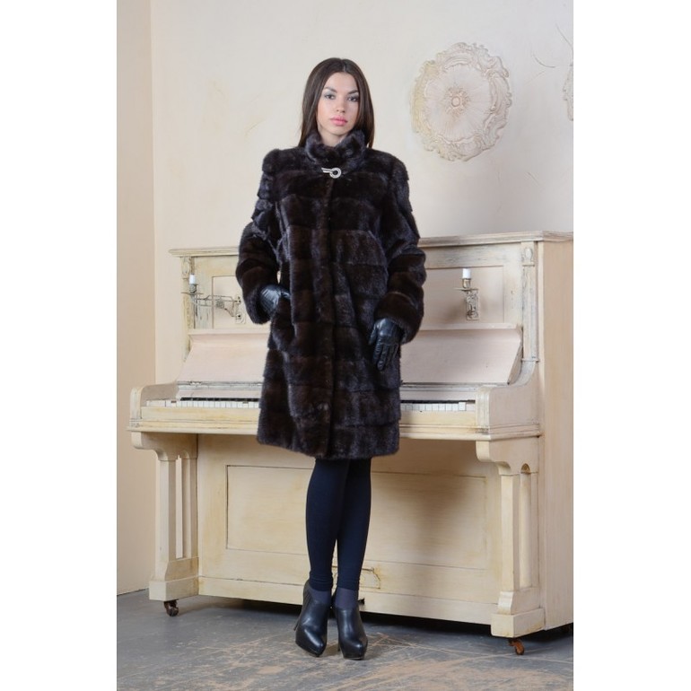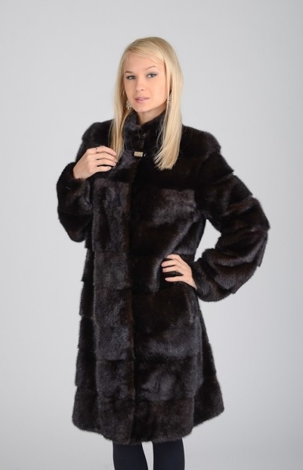 7. Женская норковая шуба (поперечка) махагонового цвета. Длина этой шубы составляет 100 см. Размер М цена 53900 р пристраивает