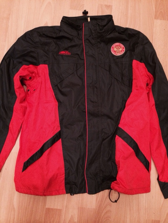 Куртка пуховая полуприлегающего силуэта с капюшоном. Капюшон, регулируемый по высоте на подкладке из искусственного меха с отстегивающейся опушкой из натурального меха. Центральная застежка на тесьму - «молнию» и ветрозащитную планку. На полочке по бокам - два кармана с клапанами на кнопках и два прорезных кармана, обработанные тесьмой "молнией". На груди расположен бесшовный карман с тесьмой "молнией". Рукава двухшовные втачные с внутренними манжетами из трикотажа. Низ рукавов регулируется по ширине патами. На рукаве выполнен дополнительный накладной карман на "молнии". На спинке в боковых швах обработаны шлицы с застежкой на кнопки. На подкладке обработана кулиска на талии для регулировки ширины и два внутренних кармана: один карман с застежкой на "молнию", второй карман - из сетки.Состав:ткань верха-100% нейлон, подкладка- 100% полиэстер, наполнитель- 85%гусиный пух, 15% перо.Нанесения: светоотражающий принт логотипа, съемный шеврон "герб ", жаккардовый лейбл "глобус", принт "RUSSIA".