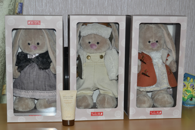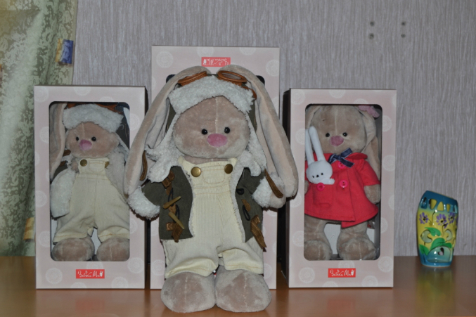 Покупала своих заек и котика у Наташи, может быть кому-то пригодятся фотки. Правда все в коробках, так как куплены в подарок на НГ для моих дочек!!!! Игрушки просто ЧУДО!! Одежда у заек, но просто шедевр, сшита очень аккуратно!!! Большое СПАСИБО!!! Всех С Наступающим Новым Годом!!!