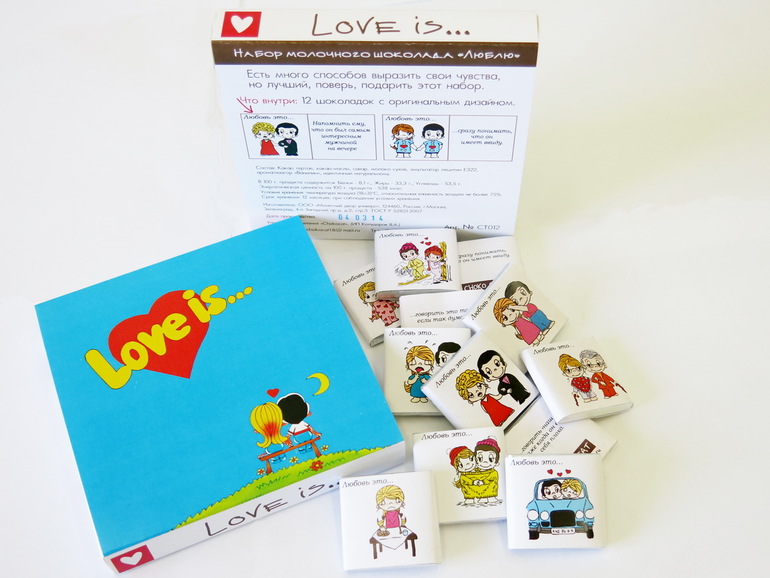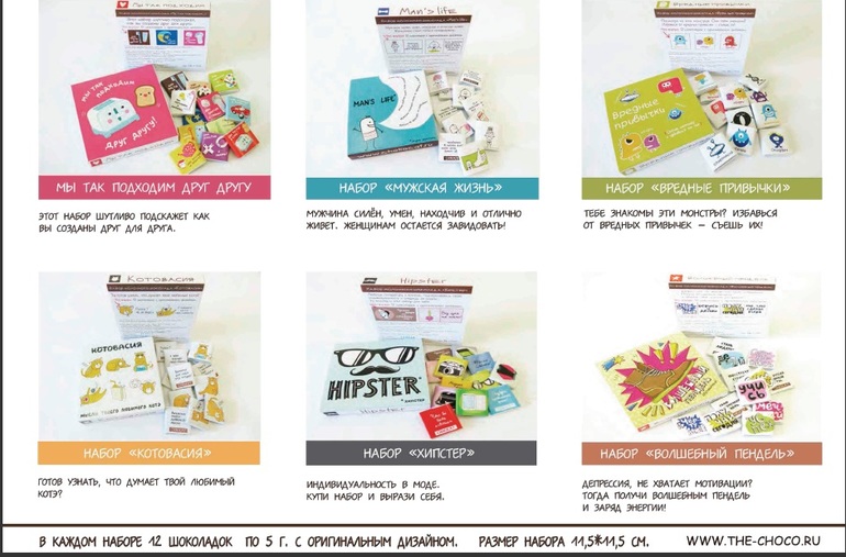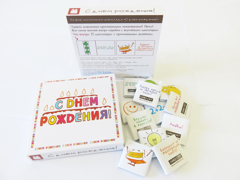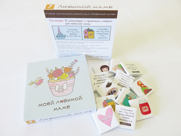 На каждой шоколадке яркая картинка и оригинальный комментарий.