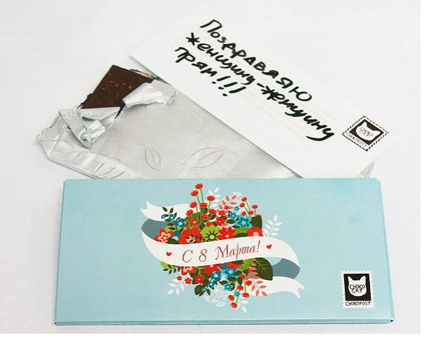 "Фишка" серии CHOKOPOST - внутри есть форма для Вашего послания. Иногда, то что хочется сказать - лучше написать! А еще в шоколад с посланием можно вложить денежные купюры или подарочный сертификат!