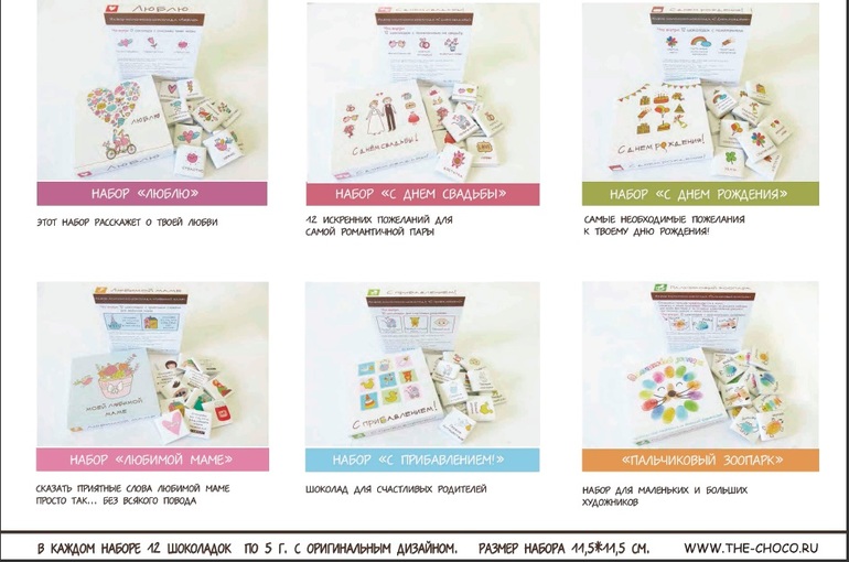 Набор состоит из 12 шоколадок-плиток по 5 грамм.