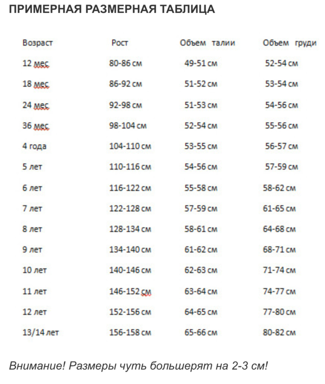 Размеры: 4 года, 5 лет, 6 лет, 7 лет. 8 лет