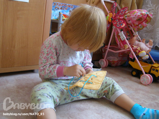 Заметила, что Лиза стала очень концентрироваться на шнуровочных делах, прям уходит в это дело с головой... И у нее здорово получается.