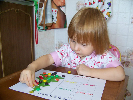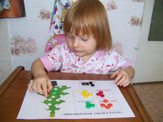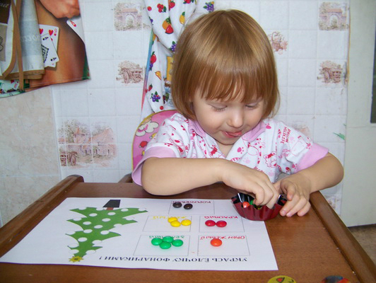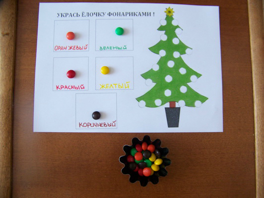 Задание состояло из двух частей. сперва нужно было рассортировать M&M по цветам. а затем разложить из на белые кружочки на елочки (огоньки зажечь)
