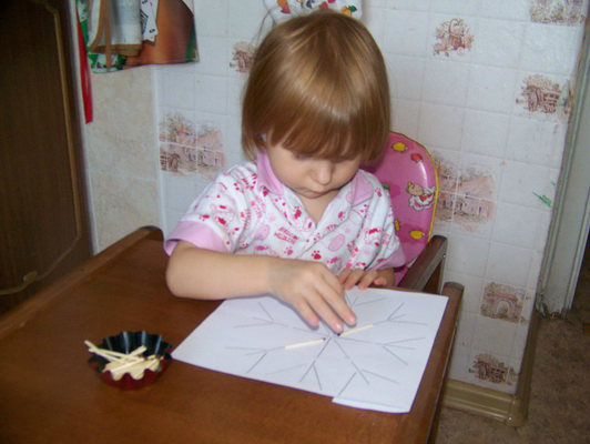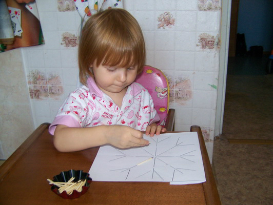 Прежде чем мы приступили к этому заданию, я выслушала от дочери лекцию о том, что со спичками нельзя играть, ведь они опасны, может быть пожар!!! вот так то! Провели беседу и решили, что под маминым контролем можно выполнять задания со спичками и без коробка...