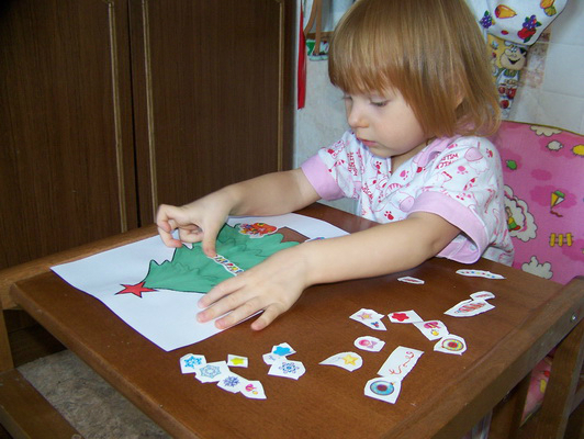 Идем дальше - украшение елочки новогодними наклейками (из набора 500 наклеек - с Новым годом!).