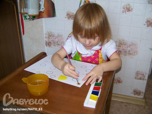 Задание простое - нужно закрасить круг соответствующей краской с помощью кисти.