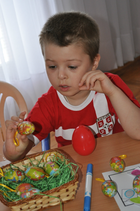 Это занятие так увлекло ребят, они очень долго собирали, разбирали и просто играли с яичками)