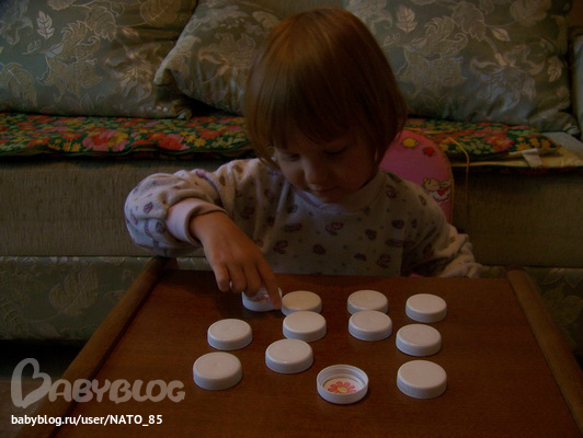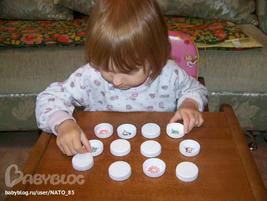 Накопилась у нас очередная порция пробок и решила я применить их для тренировки памяти. Справилась достаточно легко, умничка моя!