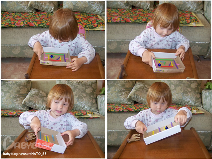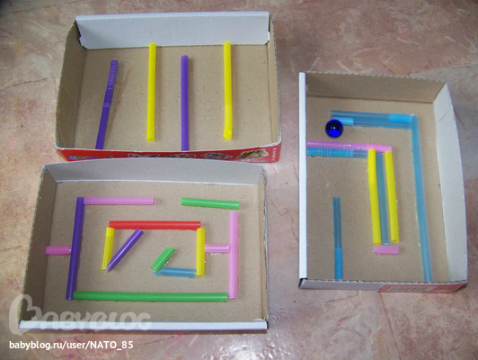 Наконец-то я решилась и перебрала Лизины пазлы в надежде освободить еще немного места... Но ведь просто так выкинуть коробочки мне все равно жалко!!! Теперь они у нас в качестве лабиринтов))) Один я делала еще давно, Лизе нравился, сегодня решила немного усложнить.