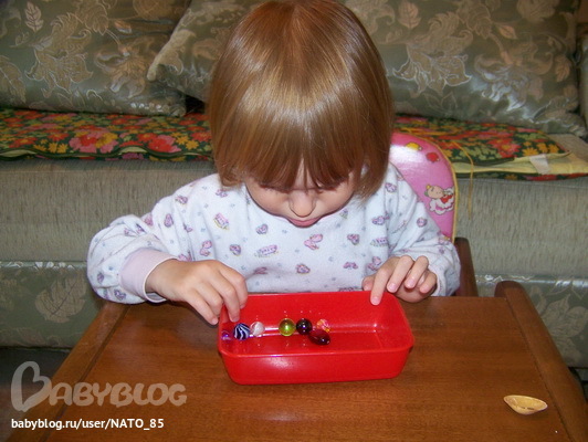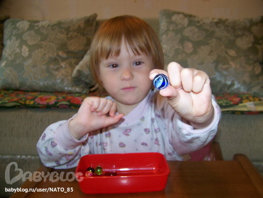 * Стеклянные шарики - это оказалась самая сложная группа, так как Лиза все время вертела поочередно все шарики и пыталась в них найти лишнего, причем красный камушек она так и не тронула.