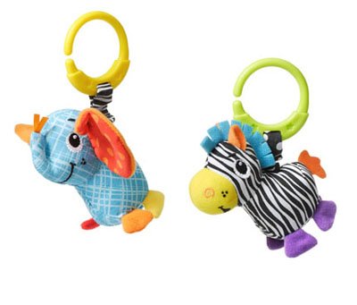 Зебра мне нравится больше. А Мише нравится, когда вибрирующую игрушку прижимают ему к ручке или животику. Сам их "активировать" пока не научился.