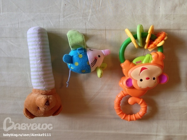 Обезьяна fisher price, крыса mothercare и текстильный медведь не-помню-кто. С ними Мишка практически вообще не играет.