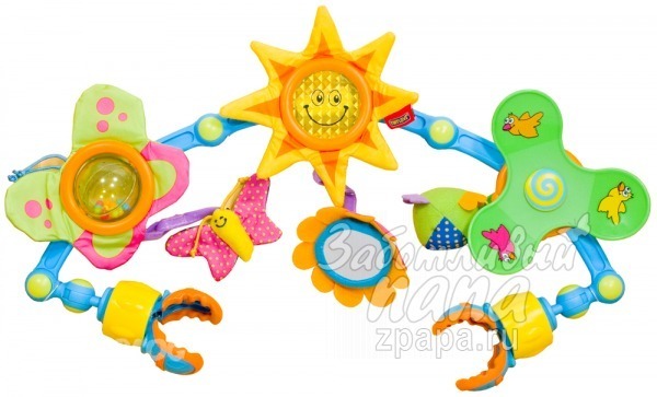 Была самой любимой игрушкой месяцев с 2. Сейчас уже не так любит, но играет периодически. Прекрасна тем, что совсем маленький дитеныш может смотреть на ее черно-белые полоски с комфортного расстояния, при этом трогая ручками подвески.