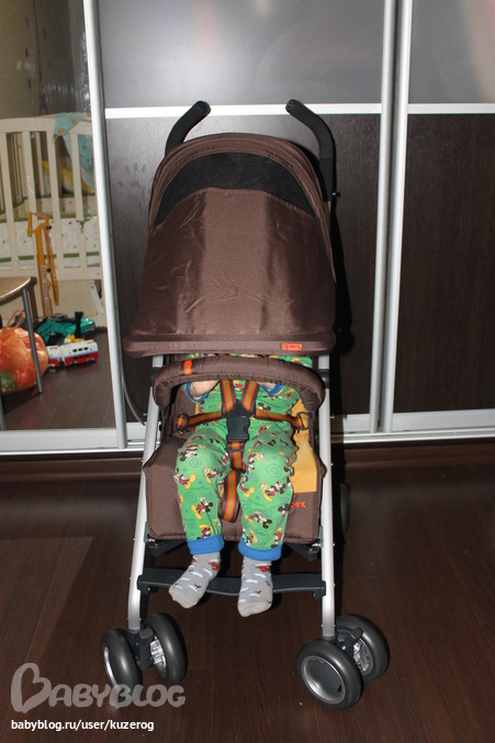 6. Сначала, когда собрали коляску, показалась узковатой, но когда сын сел, стало понятно, что и в осеннем комбезе будет хорошо.
