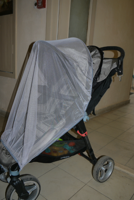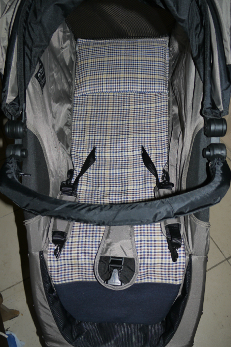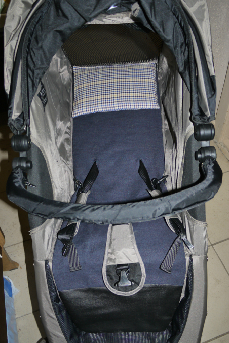 Колючую часть пришила к спинке - пришлось помучиться и пожертвовать парой пальцев, пронизывая прочную ткань коляски:)