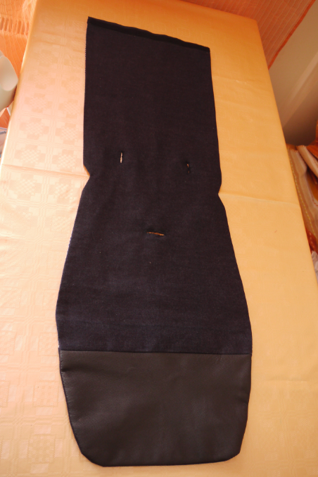 Зимняя сторона: основа - темная джинса, низ - кожзам.