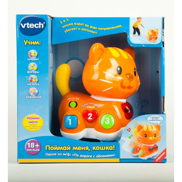 Вот это классная игрушка - Киска "Поймай меня" . Шустрая, музыкальная...разговорчивая , крутится, углы объезжает. оставила Англоязычную версию. озвучка более радостная и позитивная, чем наша озвучка нудной училки, которое не очень то хорошо поёт.)