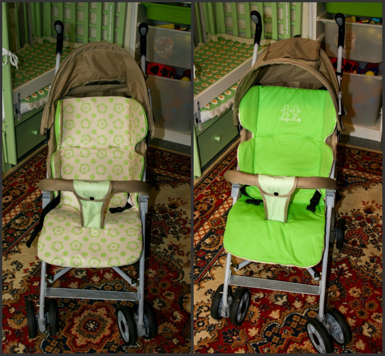 С поиском матраса тоже проблем не было, нужен был 2хсторонний (дышащая и непромокаемая стороны), с прорезями и приятных зеленых оттенков. Обивка на нашей коляске снимается крайне трудоемко с применением отверток, а сыночка я пока сажаю через верх, т.к. перемычка между ножек нам пока необходима по возрасту. Именно такой способ усадки быстро загрязнил сидение, что меня расстроило. Матрасик же стирается легко и сохнет за ночь, не требует глажки.