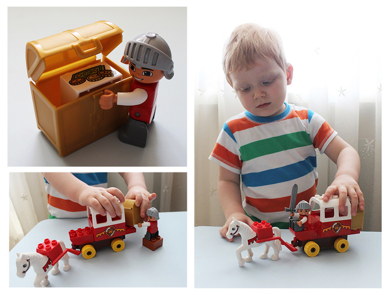 Саше 2,1 года и, мы преданные LEGO DUPLOманы с 9 месяцев, у нас уже много наборов которые только дополняют друг друга, расширяя строительные возможности и в этом есть прелесть данного конструктора. НО! Я всегда проходила мимо полок с конструкторами с рыцарской тематекой, сложно даже сказать почему. Набор LEGO DUPLO "Спасение сокровищ" 10569 расcчитан на возраст от 2 до 5 лет, но почему то я думала, что для двухлетки данная тема не совсем будет понятна. И только сейчас проведя увлекательные выходные с одним из наборов, я поняла, как сильно я ошибалась.